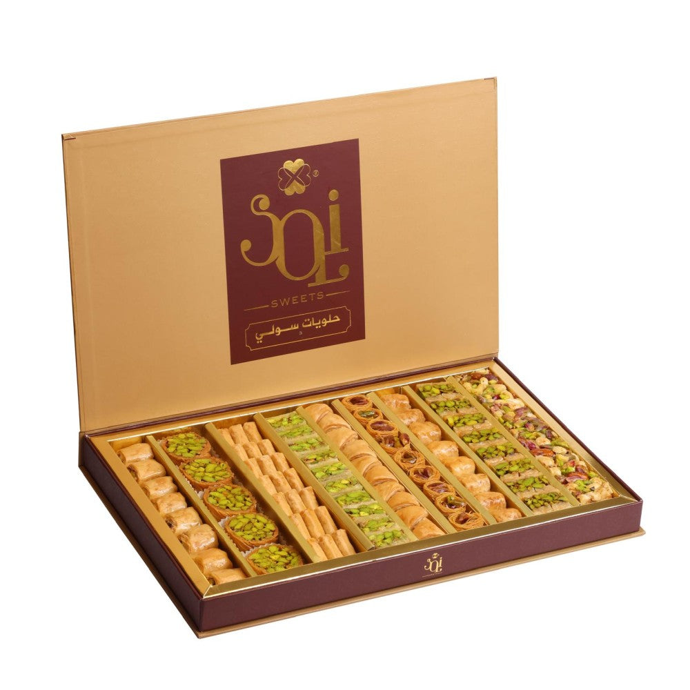 المكونات: دقيق القمح ، السكر، السمن (زبدة صناعية)، الفستق ، الكاجو ، النشا، مسحوق الحليب ، الملح، الماء.