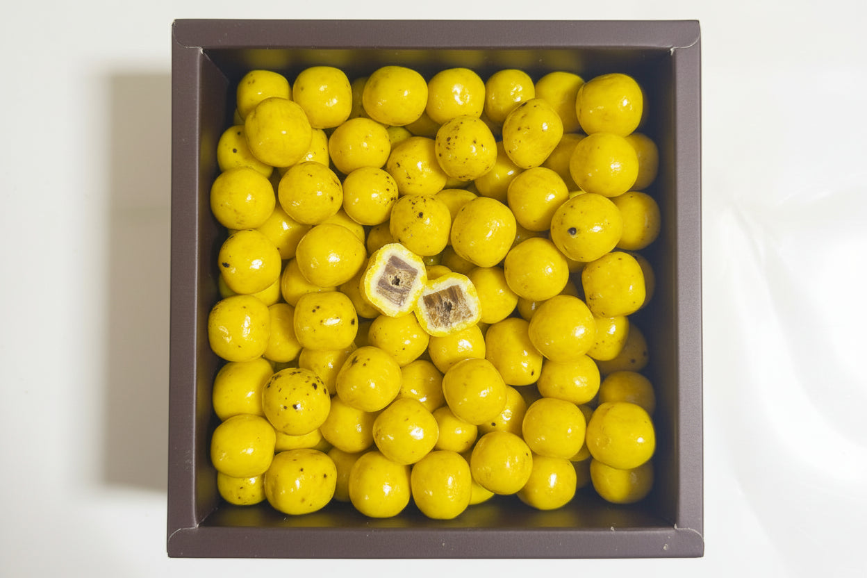 Besonderheiten: gefriergetrocknet, mit echter Frucht, umhüllt von Milchschokolade, kein Kühlprodukt