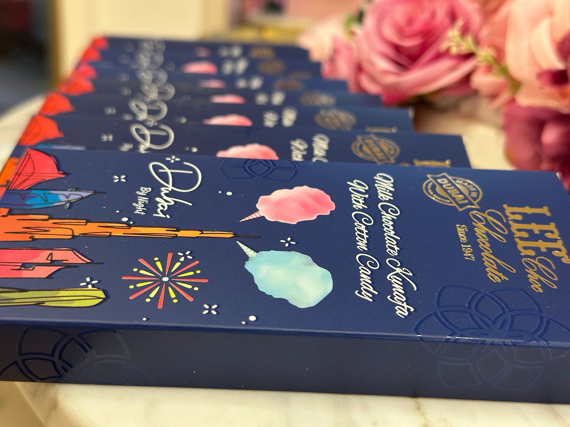 160g Milchschokolade gefüllt mit Kunafa, Pistaziencreme und Zuckerwatte.