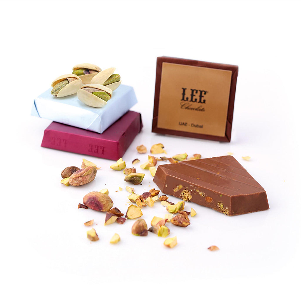 Zutaten: Zucker, Kakaomasse, Kakaobutter, Vollmilchpulver, Magermilchpulver, Sojalecitihn (E322), Vanillin, Haselnuss, Mandel, Pistazien, Walnuss, Cashew, Erdnuss.